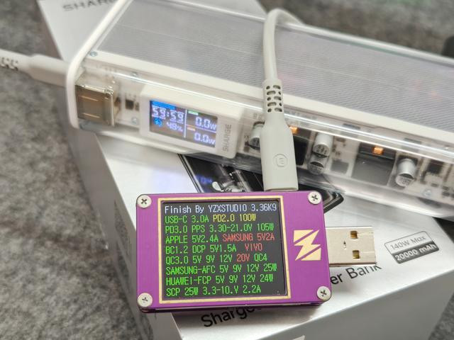 Type-C口则能支持到目前行业内的绝大多数快充输出,兼容PD3.0、PPS、QC、华为SCP和FCP,手持这么一款移动电源,基本上所有的支持快充的设备都能够满足其充电需求。