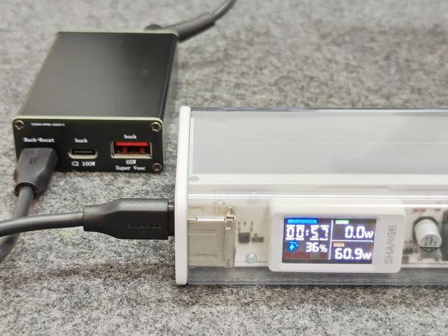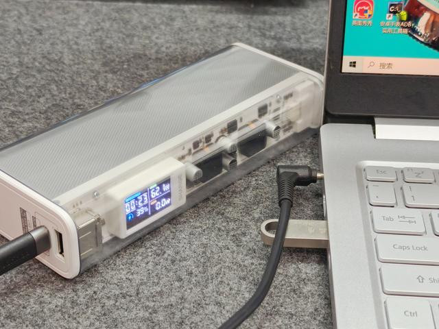 我的笔记本电脑最大充电功率65W,使用这款移动电源供电时,能够非常稳定的输出62W左右。